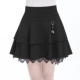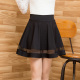 2017新款春秋黑色高腰蕾丝拼接A字百褶裙短裙半身裙裙裤大码裙子