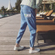 港风潮男2017春夏新款小脚牛仔裤韩版宽松哈伦裤学生日系九分裤男