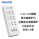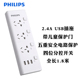 飞利浦USB插座4位独立控制开关排插2.4A智能充电插排插线板正品