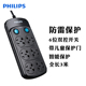 飞利浦六位总控插排 防雷防火阻燃插线板电源插座插板正品