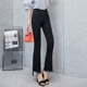 春款高腰大码微喇叭毛边女九分阔腿裤显瘦不规则流苏喇叭裤潮黑色
