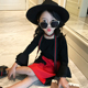 女童夏装套装中大童一字领露肩喇叭袖上衣休闲两件套吊带短裤套装