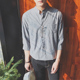 春夏装新款男士七分袖衬衫韩版休闲中袖寸衫青年立领条纹衬衣男潮