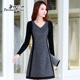 毛呢连衣裙 蝶恋枫2016秋冬新款长袖气质修身加厚a字裙拼接打底裙