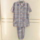 秋鹿睡衣2017夏季女士高档梭织印经典小方格女短袖七分裤家居服套