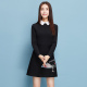 春季新款女装韩版假两件打底长袖黑色连衣裙刺绣修身显瘦a字短裙
