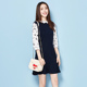 2017春装新款女装韩版七分袖连衣裙修身假两件打底a字裙淑女短裙