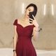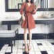 2017新款潮韩版气质学生显瘦夏季裙子小香风V领红色礼服连衣裙女