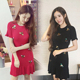 2017新款女装潮韩版小香风学生礼服裙子夏季修身显瘦红色连衣裙女