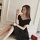 2017夏季新款潮韩版小清新学生显瘦裙子chic一字领露肩连衣裙女夏