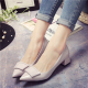 韩版夏季方跟漆皮尖头浅口粗跟单鞋四季鞋5cm百搭中跟女鞋高跟鞋