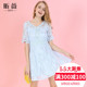 昕薇2017夏装新款a字裙短裙喇叭袖拼接镂空显瘦V领蕾丝连衣裙