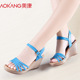 奥康女鞋夏季真皮坡跟女凉鞋防水台厚底波西米亚风大码透气沙滩鞋
