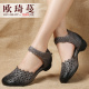 欧琦蔓2017夏新款羊皮厚底凉鞋女松糕底镂空复古坡跟休闲女鞋6811