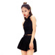 少年齐 针织圆领短袖修身显瘦黑色高腰显腿长三角比基尼女泳衣