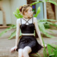 少年齐 黑白撞色大蝴蝶结镂空露背绑带钢托设计感裙式连体泳衣