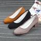 韩新款舒适中跟通勤工作鞋复古方头浅口绒面粗跟单鞋简约百搭女鞋