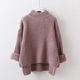 韩版开叉不规则中长款加厚大码套头高领毛衣女保暖宽松前短后长潮
