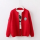 2017春季新款女装韩版加厚针织印花棒球服短款圆领毛衣开衫外套