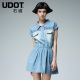 udot右道薄棉绣花翻裙牛仔连衣裙短裙2017夏Q204