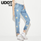 2017春右道哈伦裤女修身中腰天丝女裤印花宽松牛仔裤女UU597
