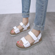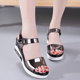 2017新款韩版凉鞋女夏简约真皮中跟厚底松糕亮片百搭学生平底凉鞋