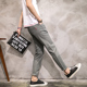 春夏季日系哈伦青年休闲九分裤男士纯色小脚直筒修身裤子男生潮流