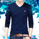 长袖t恤男韩版修身青年休闲针织V领春季薄款打底针织衫毛衣潮2017
