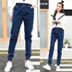 女生牛仔裤韩版夏季高腰小脚哈伦裤宽松收脚裤松紧腰长裤束脚裤潮