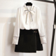 春装新款时尚名媛范木耳边立领雪纺衫蝴蝶结衬衫女压皱长袖上衣