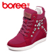 Boree/宝人春秋季高帮鞋女隐形内增高鞋朋克铆钉休闲鞋女运动鞋