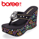 Boree/宝人专柜正品女防滑高跟韩版百搭潮坡跟松糕跟凉拖鞋人字拖
