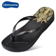 hotmarzz/黑玛坡跟人字拖鞋女厚底防水台沙滩鞋简约图案女凉拖鞋