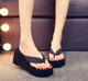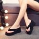 夏季韩版高跟人字拖女坡跟防滑厚底松糕凉拖鞋增高夹脚沙滩鞋黑色