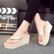 夏季时尚人字拖鞋女士高跟凉鞋坡跟厚底沙滩鞋夹脚凉拖韩版松糕鞋