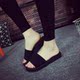 2016新款简约时尚凉拖鞋女夏韩版厚底坡跟一字拖鞋防滑平底沙滩鞋