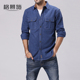 冬季新款大码男士纯棉加厚色织磨毛长袖衬衫男美式休闲衬衣潮外