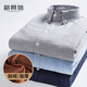 格慕施保暖加绒加厚长袖衬衫男士加肥加大码纯色牛津纺休闲衬衣男