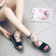 女士交叉绑带罗马凉鞋女夏季2017新款厚底松糕韩版学生平底凉鞋