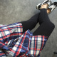 裙裤春秋假两件打底裤格子衬衫薄款纯棉裤子女外穿大码显瘦长裤潮