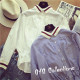 2017韩版气质女生条纹潮流宽松长袖衬衫甜美显瘦收腰上衣复古衬衣