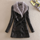换季清仓pu皮衣女中长款修身韩版大码加绒加厚真兔毛领棉外套