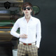 秋季韩版修身型竖条纹青年花衬衣男士商务免烫长袖衬衫英伦休闲潮