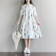 木森家2017夏新款文艺小清新树叶印花薄透纱质宽松七分袖连衣裙女