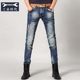 工业时代弹力破洞牛仔长裤男修身直筒商务休闲男装男士牛仔长裤子
