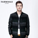 马克华菲夹克男士修身羊毛外套2017春装韩版条纹拼皮jacket 7500