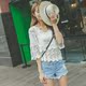 韩版百搭宽松显瘦短款七分袖喇叭袖套头镂空网纱罩衫上衣蕾丝衫女