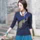 妃嬛2016春秋装新品民族风女装孔雀订珠刺绣棉长袖T恤打底衫上衣