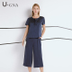 尤季娜2017夏新款纯色重磅真丝T恤时尚阔腿裤套装女两件套潮