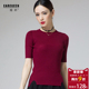 2017春装中袖针织衫女圆领韩版短袖打底衫修身半袖毛衣套头短款薄
